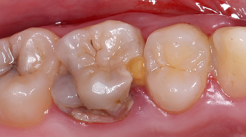 This patient came to us with severe decay in a molar, to the point where a crown was typically required. Traditionally, getting a crown involves multiple steps: tooth preparation, lab impressions, and waiting days or even weeks for the crown to be ready.